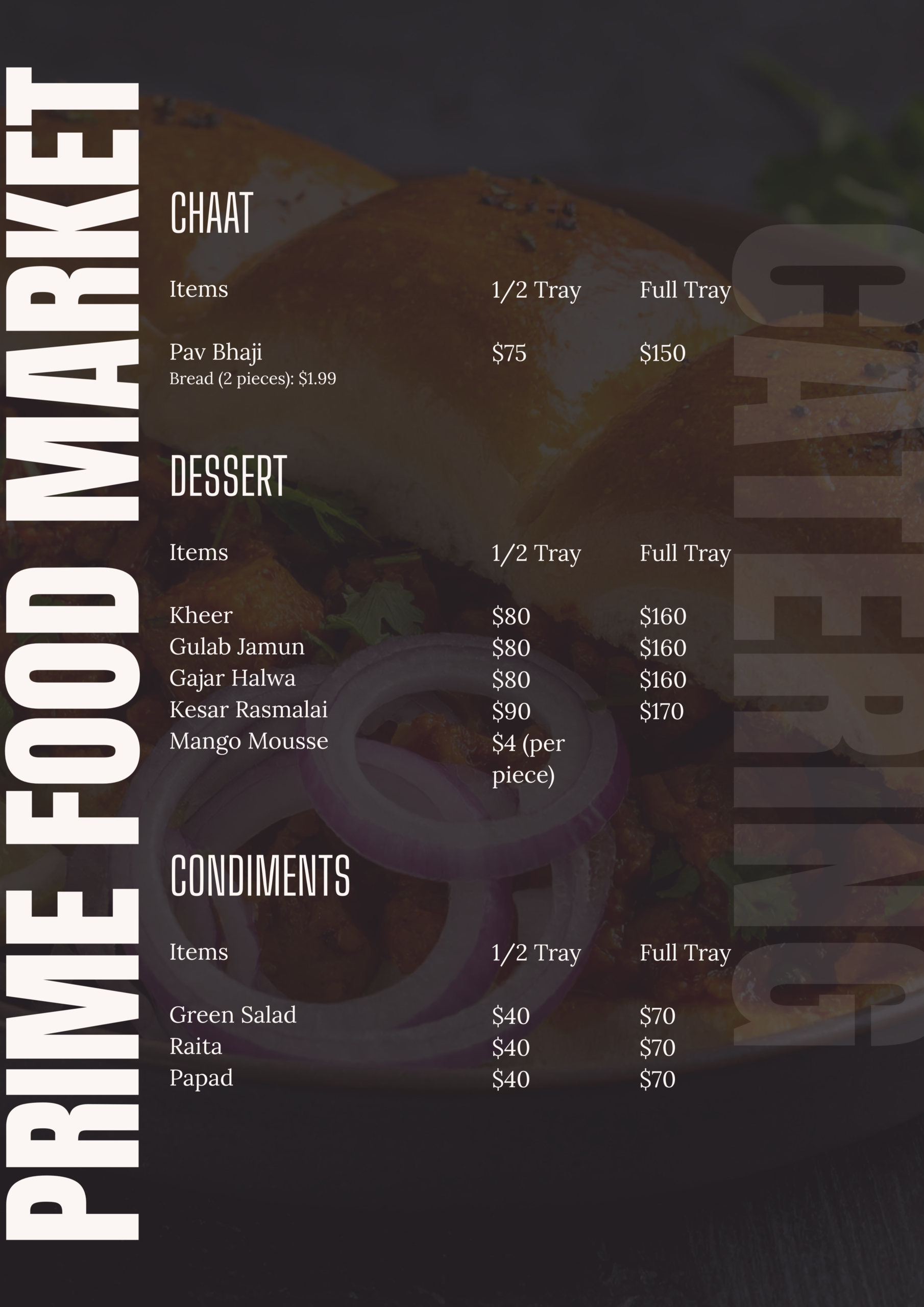 NJ Prime Food Market offers bulk food catering in Jersey City, New Jersey for family gatherings, office meetings, celebrations, and community events. Our catering menu features freshly prepared authentic Indian dishes made with quality ingredients and traditional flavors. Customers can order food in bulk and conveniently pick it up from our store, making it a simple and reliable option for events in the local community.